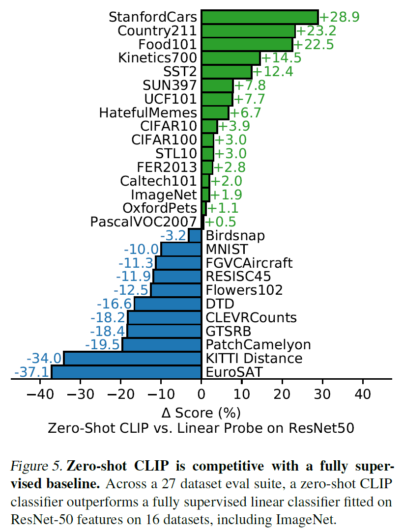 이렇게 학습한 모델은 zero shot transfer를 통해 downstream task에도 적용해보았다.