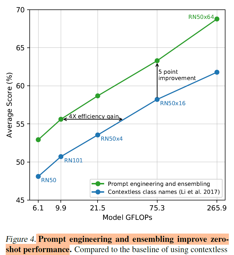 prompt를 어떻게 커스텀하는 것에 따라 zero shot performance이 달라졌다. 여러가지 프롬프트를 앙상블해서 학습하는 것을 통해서 좋은 성능을 보일 수 있었다.