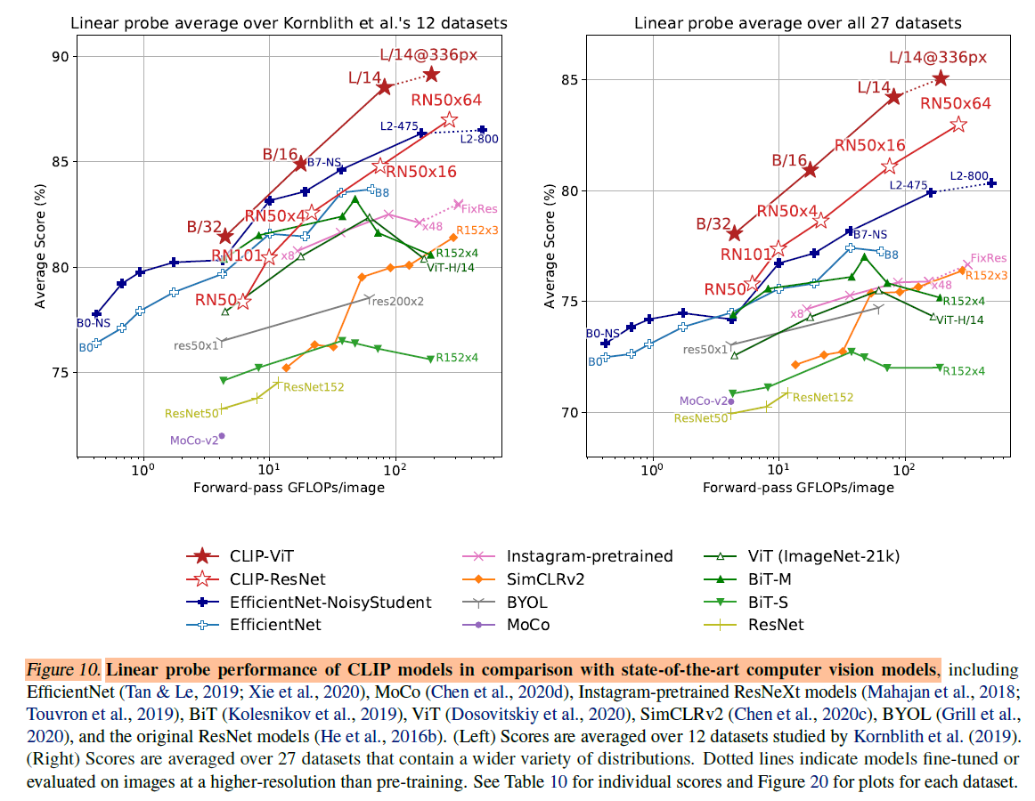 ResNet-50, a ResNet-101, ViT-B/32, a ViT-B/16, ViT-L/14 를 사용하였다.