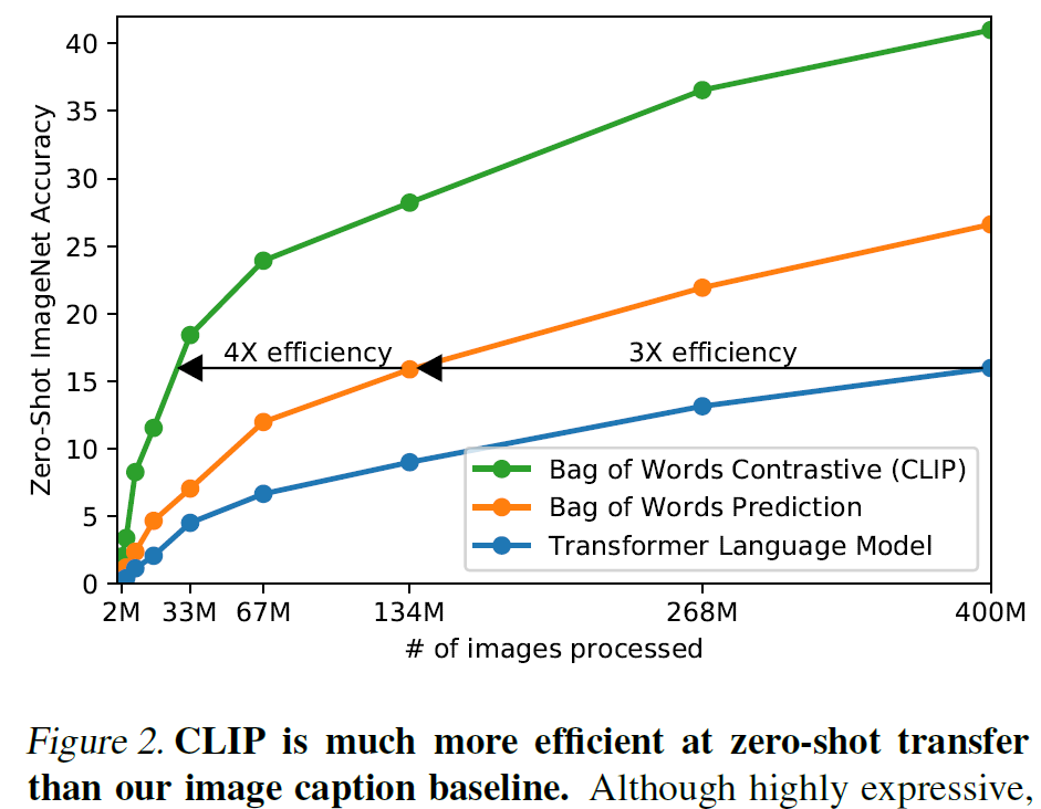 또한 자연어 기반으로 학습하면 단순히 image representation을 학습하는 것이 아니라 더 깊은 의미를 학습해서 zero shot transfer를 가능하게 한다.