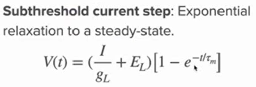 여기서 t가 무한대로 갈 때 전압은 subthreshold 상태에서 일정한 막전위 값을 갖는다는 것을 확인할 수 있다.
