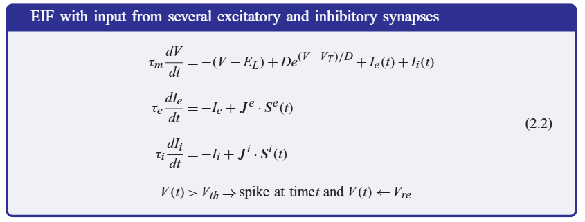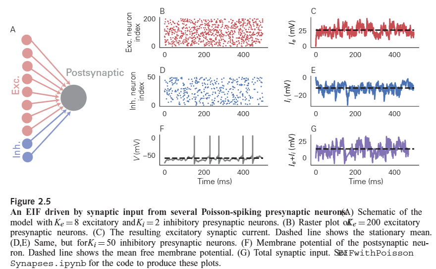 - K개의 흥분성, 억제성 뉴런로부터 신호를 받는 single EIF modeling