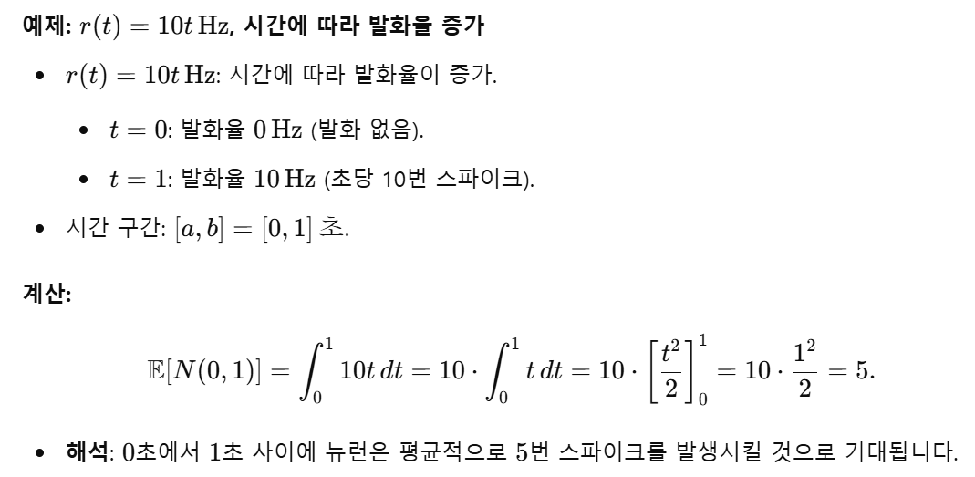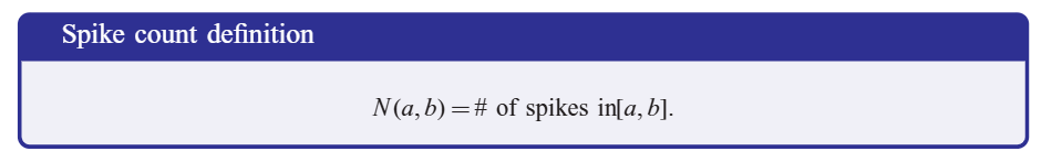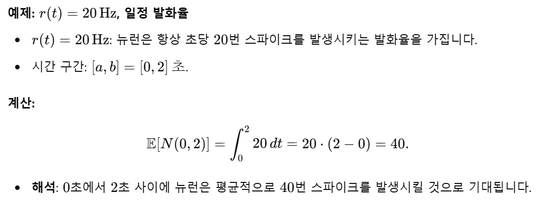1) 시간 구간 [a,b] 동안 뉴런이 발생시킬 스파이크의 평균 갯수