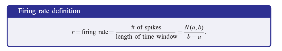 Firing rate: number of spikes per unit time, spike/s -> Hz 단위