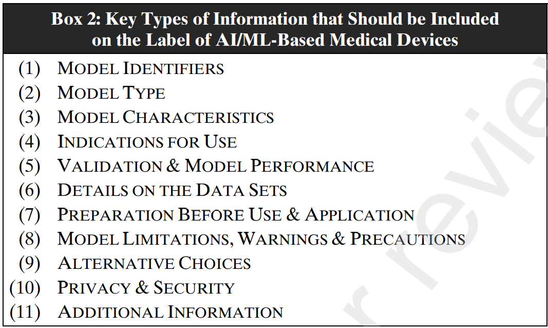 AI 기반 의료 도구들은 제한된 데이터를 기반으로 학습되는 경우가 많다. 아직까지 AI 학습에 사용되는 의료 데이터는 완전하지 않으며, 모든 유형의 환자를 고려하지 않은 학습이 진행되고 있다고 한다. 따라서 이러한 부정확한 학습은 환자에게 해를 가할 수 있기 때문에, 소비자에게 투명성을 공개하여 위험의 정도를 판단할 수 있도록해야 한다는 것이 권고안의 취지이다.